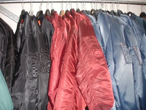 Levering spijkerbroeken merk Bram Sparis, Legerbody-warmers, legerjassen, werkschoenen, sokken, jacks. bomberjacks, stropdassen en nog veel meer!