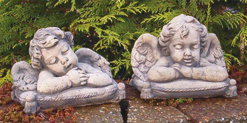 Links: 1090 Engel slapend Hoogte: 19 cm Gewicht: 7 kg Rechts: 1091 Engel rustend Hoogte: 21 cm Gewicht: 7 kg