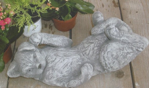 Poes op rug. Lang. 45 cm Hoog 17 cm
